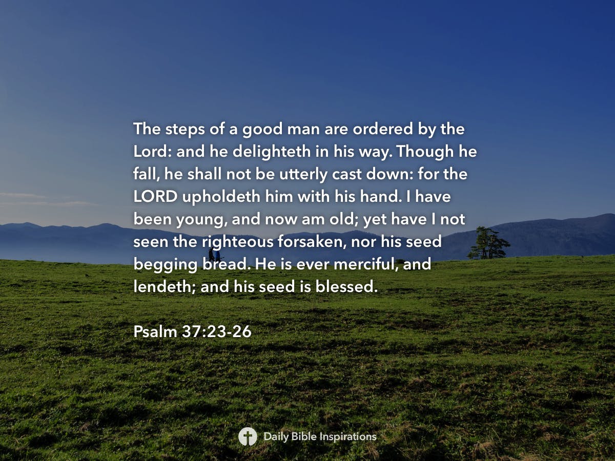 Yet have I not seen the righteous forsaken nor his seed begging bread. 23 The steps of a good man are ordered by the LORD. 26 He is aever merciful and lends.