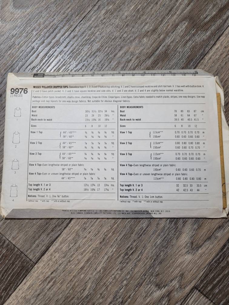 Simplicity Sewing Pattern 9976 Misses Pullover Crop Tops Etsy